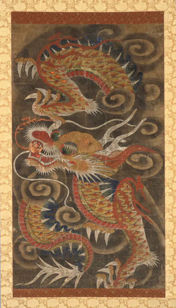 Dragon and Clouds (Unyongdo). Artist Unknown. Korean, Joseon Dynasty, 19th century. Ink and color on paper. 45 1/2 × 26 1/4 in. (115.6 × 66.7 cm). San Antonio Museum of Art, gift of Lenora and Walter F. Brown, 2006.4.3.